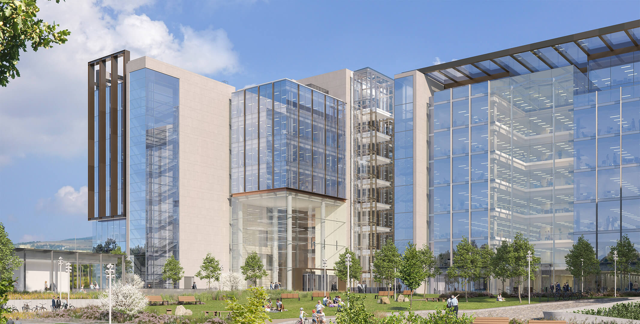 Building N1 will offer nine floors of premium office space, boasting a breathtaking quadruple-height reception, panoramic lifts and a communal roof garden with 360º views to the Dublin Mountains and the Dublin Bay